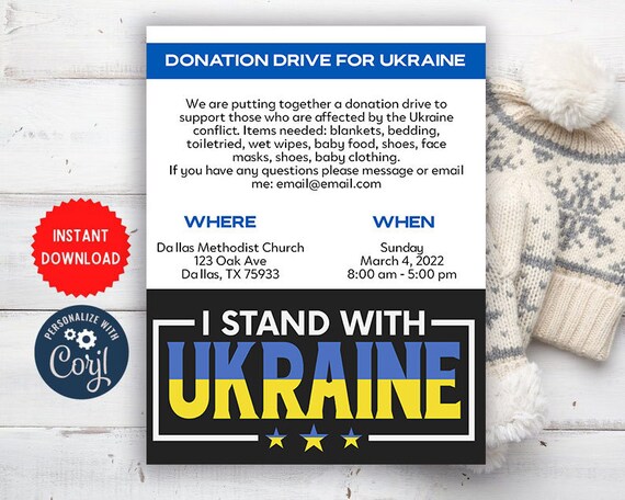 Donation Drive For Ukraine Charity Flyer Donate Conflict Food Etsy